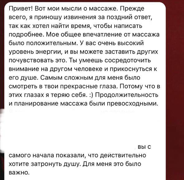 4. После массажа у вас есть время поделиться чем-то важными для вас и интегрировать свой опыт.